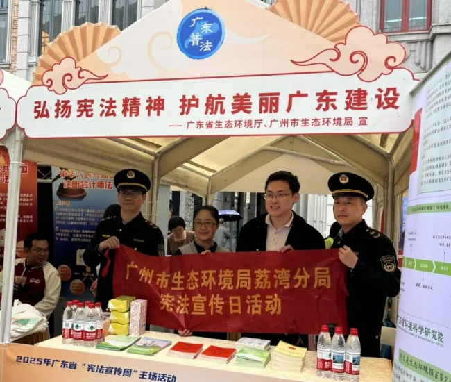 今年是习近平法治思想提出5周年,12月4日是第十二个国家宪法日。近日,省普法办、省司法厅在广州市荔湾区永庆坊岭南特色法治文化阵地组织举办2025年广东省“宪法宣传周”主题主场活动。省生态环境厅作为省落实普法责任制厅际联席会议成员及本次活动的协办单位,联合广州市生态环境局参加活动。