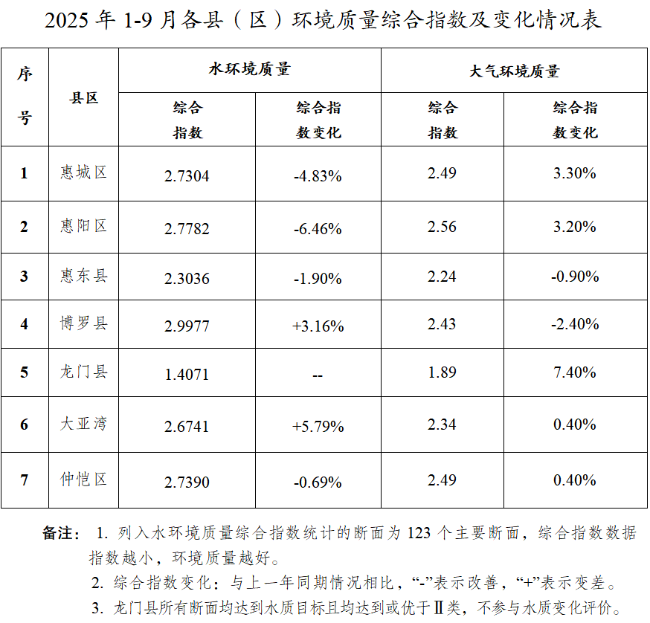 【惠州】2025年1-9月惠州市污染防治攻坚战情况通报
